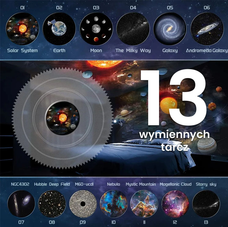 12 wymiennych projekcji galaktyk, planet, mgławic